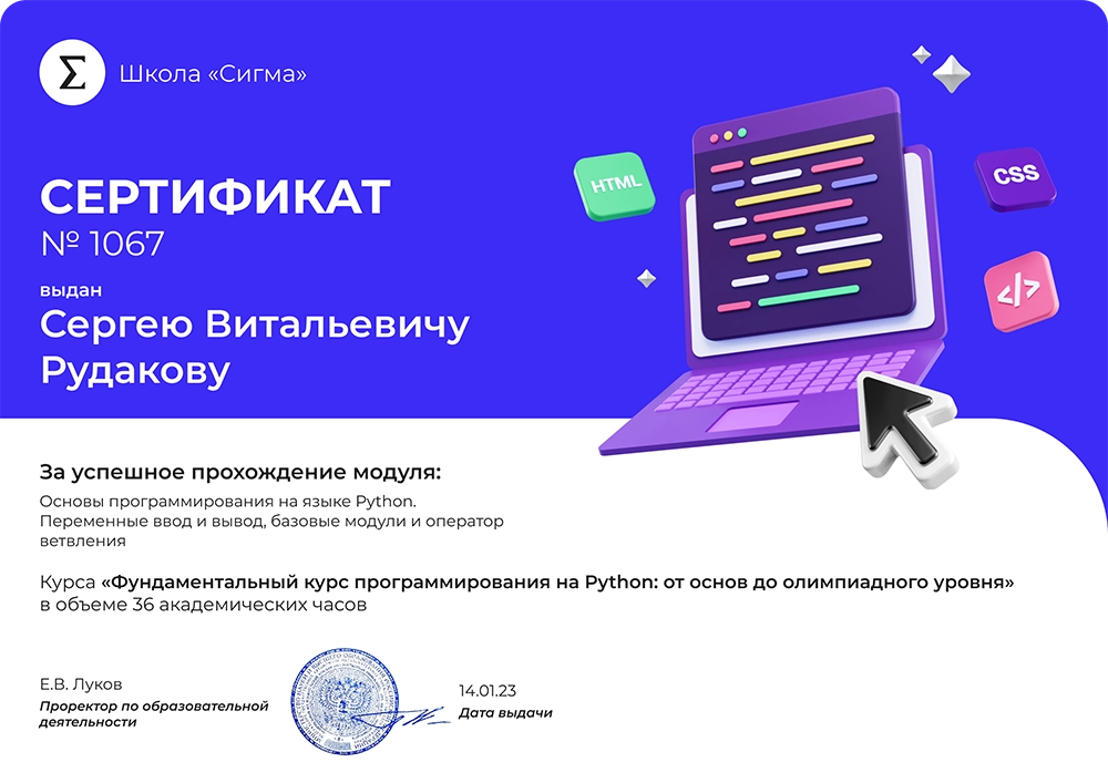 По итогам успешного обучения мы выдаем цифровые сертификаты о прохождении программы.